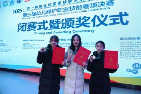 近日,2025“一帶一路”暨金磚國家技能發(fā)展與技術(shù)創(chuàng)新大賽第三屆幼兒照護(hù)職業(yè)技能賽項(xiàng)總決賽在內(nèi)蒙古民族幼兒師范高等??茖W(xué)校圓滿落幕。我校護(hù)理學(xué)院嬰幼兒托育服務(wù)與管理專業(yè)李馨、張麗楊、林喆芝三位教師組成的參賽團(tuán)隊(duì),憑借扎實(shí)的專業(yè)功底、出色的教學(xué)設(shè)計(jì)和默契的團(tuán)隊(duì)協(xié)作,在全國眾多優(yōu)秀參賽隊(duì)伍中脫穎而出,成功斬獲教師組二等獎(jiǎng),充分展現(xiàn)了我校在嬰幼兒托育人才培養(yǎng)及師資隊(duì)伍建設(shè)方面取得的成果。