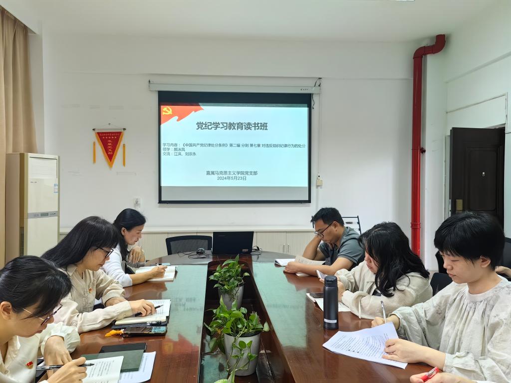 為進(jìn)一步嚴(yán)明黨的組織紀(jì)律,增強(qiáng)黨員組織觀念,2024年5月23日,直屬馬克思主義學(xué)院黨支部黨紀(jì)學(xué)習(xí)教育讀書班在厚德樓107會議室圍繞《中國共產(chǎn)黨紀(jì)律處分條例》開展第三次集體學(xué)習(xí)活動。
