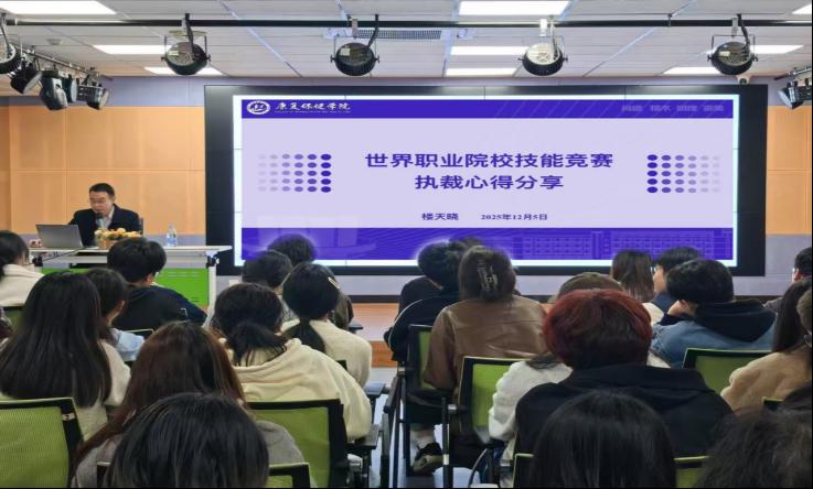 講座伊始,醫(yī)學(xué)院院長(zhǎng)鄧元榮向樓天曉教授致以誠(chéng)摯歡迎。隨后,樓天曉結(jié)合其豐富的國(guó)賽執(zhí)裁經(jīng)驗(yàn),系統(tǒng)解析了競(jìng)賽規(guī)程的演進(jìn)脈絡(luò)、能力評(píng)價(jià)的核心維度及技術(shù)實(shí)施的關(guān)鍵要點(diǎn),深刻闡述了高水平技能競(jìng)賽的發(fā)展趨勢(shì)與內(nèi)在要求。通過(guò)真實(shí)案例的生動(dòng)剖析,樓天曉為現(xiàn)場(chǎng)師生明晰了備賽常見(jiàn)問(wèn)題與提升路徑,強(qiáng)調(diào)扎實(shí)的專業(yè)根基、規(guī)范的操作素養(yǎng)、高效的團(tuán)隊(duì)協(xié)作與穩(wěn)定的心理素質(zhì),既是賽場(chǎng)奪優(yōu)的關(guān)鍵,亦是職業(yè)教育人才培養(yǎng)的核心目標(biāo)。
